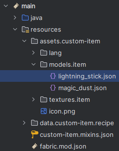 Na přidání textury si musíme ve složce s modely vytvořit json soubor s názvem našeho itemu.