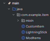Abychom mohli upravit chování itemu, tak si nejprve pro item musíme vytvořit novou třídu. Tu můžeme pojmenovat například LightningStick Třídu vytvoříme kliknutím pravým tlačítkem myši na složku a zvolíme New > Java Class. Třídu vytvoříme ve stejné složce, jako máme naše ostatní třídy (ModItems,CustomItem).