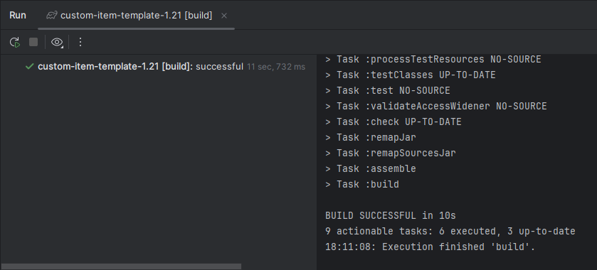 Abychom vytvořili výsledný soubor s módem, tak spustíme (dvakrát klikneme levým tlačítkem myši) úlohu build. Ve spodní části se nám zobrazí informace o průběhu úlohy.