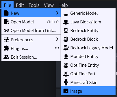 Projekt pro tvorbu obrázku si můžeme vytvořit buď z úvodní obrazovky, kde zvolíme možnost Image nebo opět pomocí menu nahoře, kde zvolíme File > New > Image.