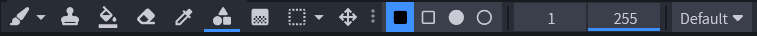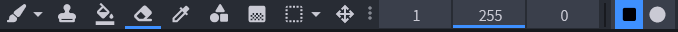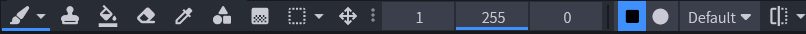 Jako první nástroj si ukážeme štětec. Ten používáme na kreslení a můžeme u něj měnit velikost - první číslo. Další čísla zatím nemusíme řešit.