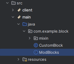 Stejně jako jsme měli u itemu třídu ModItems, kde jsme měly všechny itemy, tak i zde si vytvoříme třídu, kde budeme mít všechny bloky. Tuto třídu nazveme ModBlocks.
